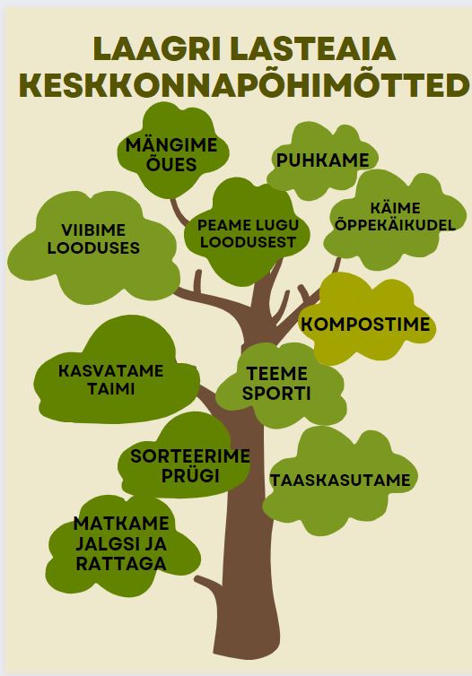 Laagri Lasteaed liitus Rohelise kooli programmiga 2019.a sügisel, et muuta õpetajad, lapsed ja vanemad teadlikumaks keskkonna hoidmises